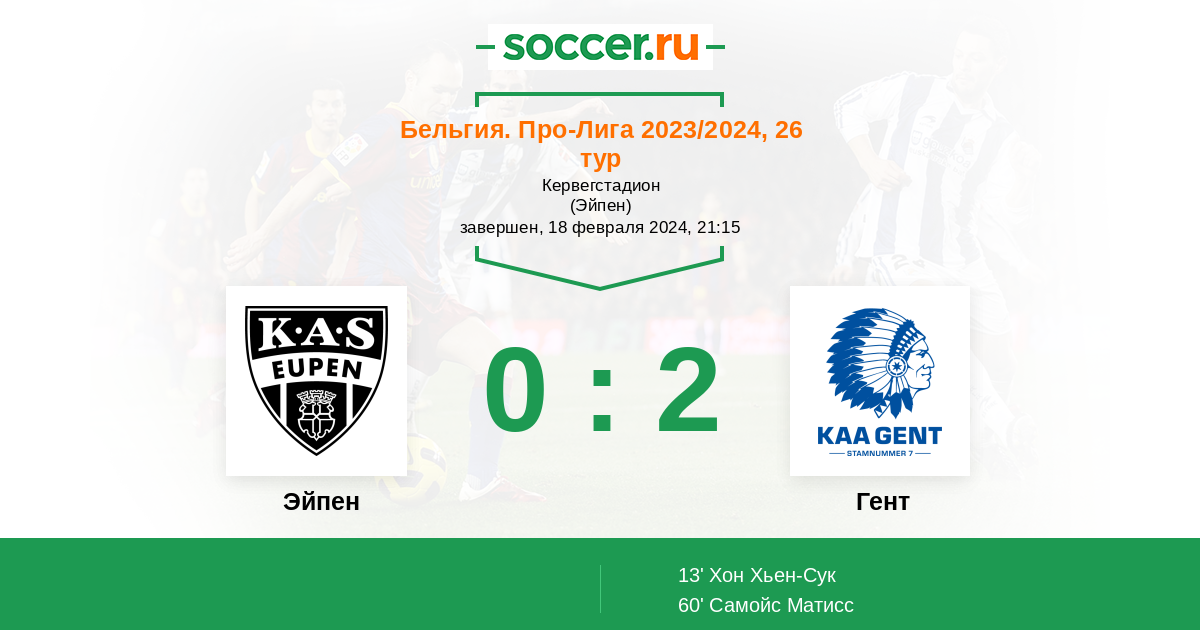 Эйпен - Гент: обзор матча 18 февраля 2024