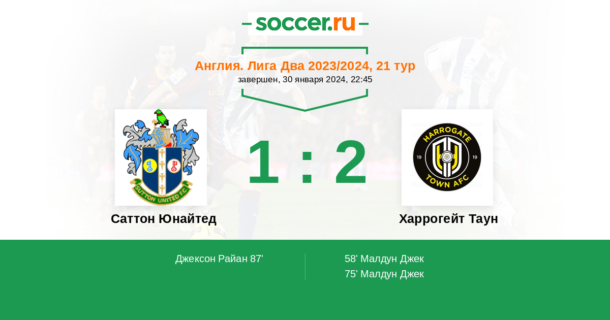 Саттон Юнайтед - Харрогейт Таун: обзор матча 30 января 2024
