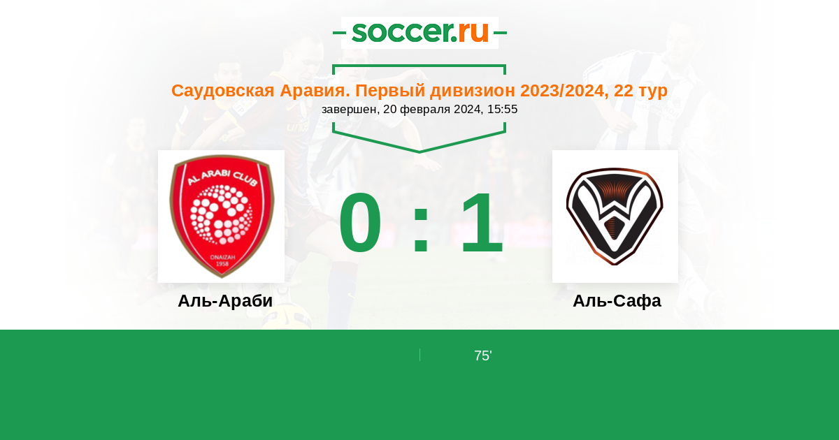 Аль-Араби - Аль-Сафа: обзор матча 20 февраля 2024