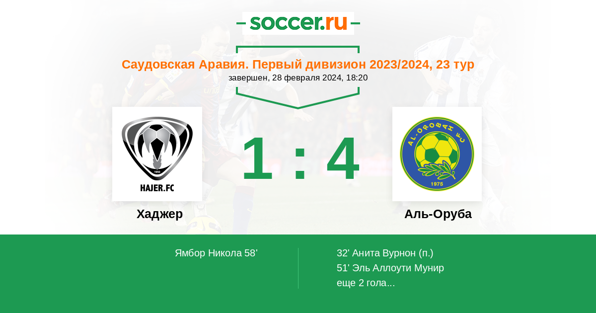 Хаджер - Аль-Оруба: обзор матча 28 февраля 2024