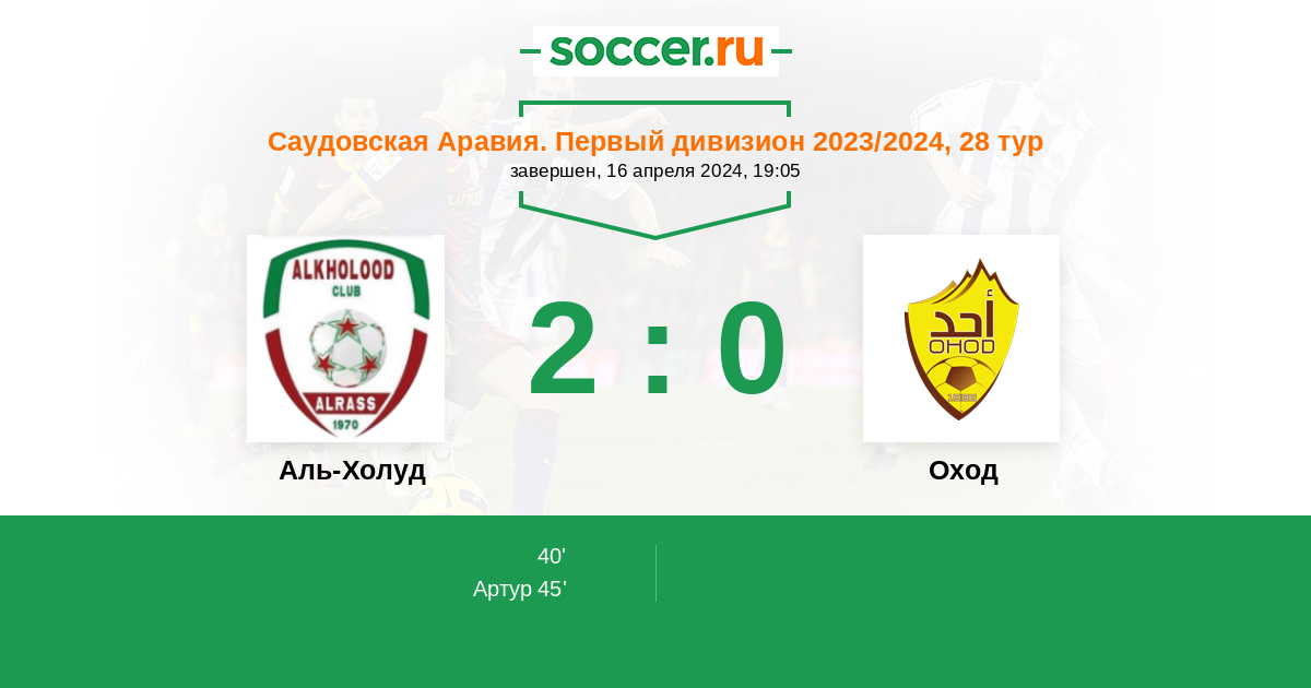Аль-Холуд - Оход: обзор матча 16 апреля 2024