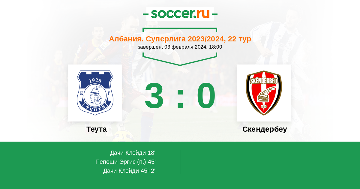 Теута - Скендербеу: обзор матча 3 февраля 2024