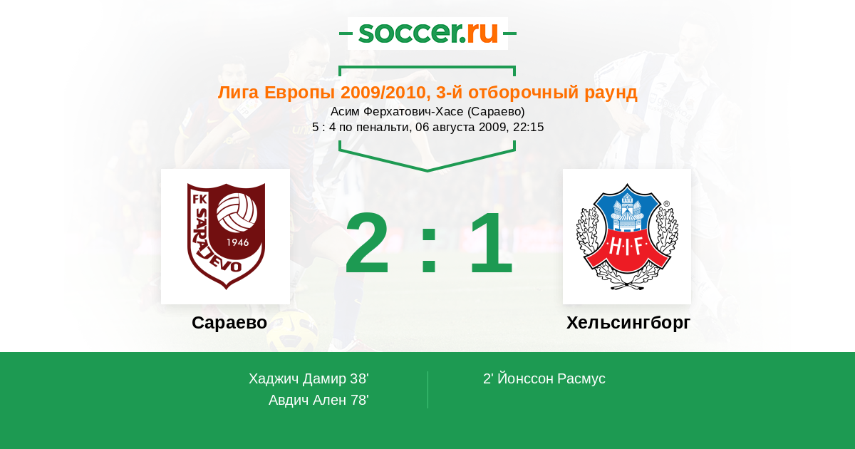 Сараево - Хельсингборг: обзор матча 6 августа 2009