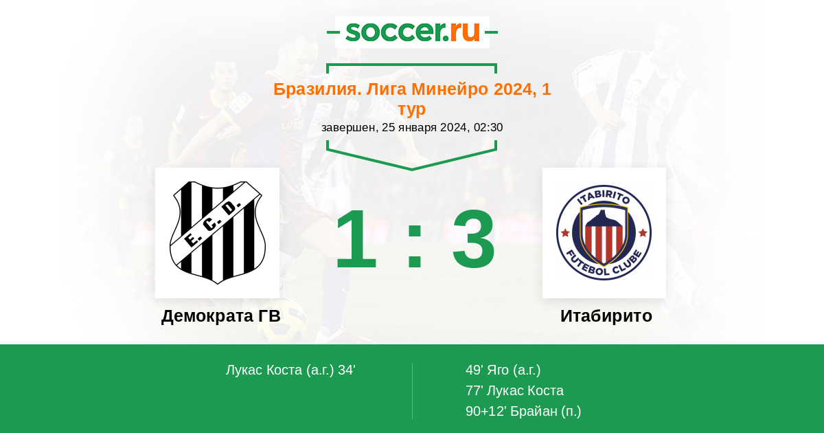 Демократа ГВ - Итабирито: обзор матча 25 января 2024