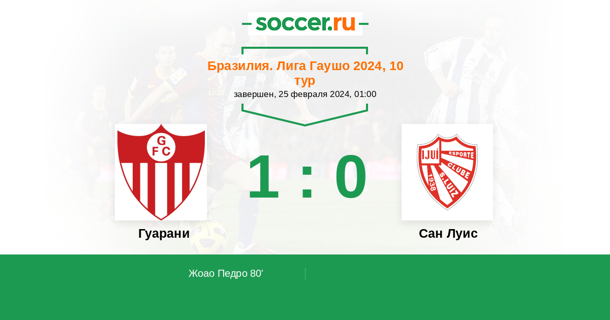 Гуарани - Сан Луис: обзор матча 25 февраля 2024