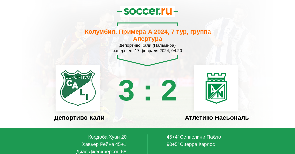 Депортиво Кали - Атлетико Насьональ: обзор матча 17 февраля 2024