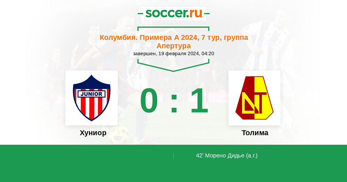 Хуниор - Толима: обзор матча 19 февраля 2024