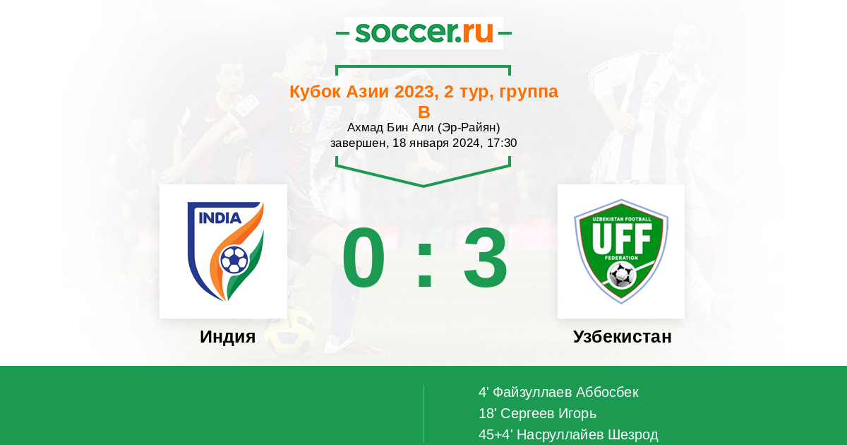 Индия - Узбекистан: обзор матча 18 января 2024