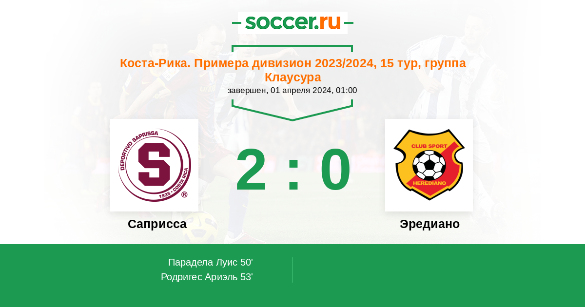 Саприсса - Эредиано: обзор матча 1 апреля 2024