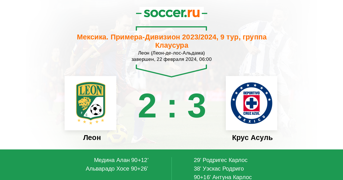 Леон - Крус Асуль: обзор матча 22 февраля 2024