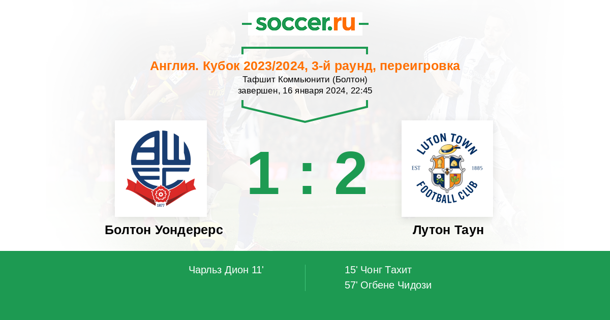 Болтон Уондерерс - Лутон Таун: обзор матча 16 января 2024