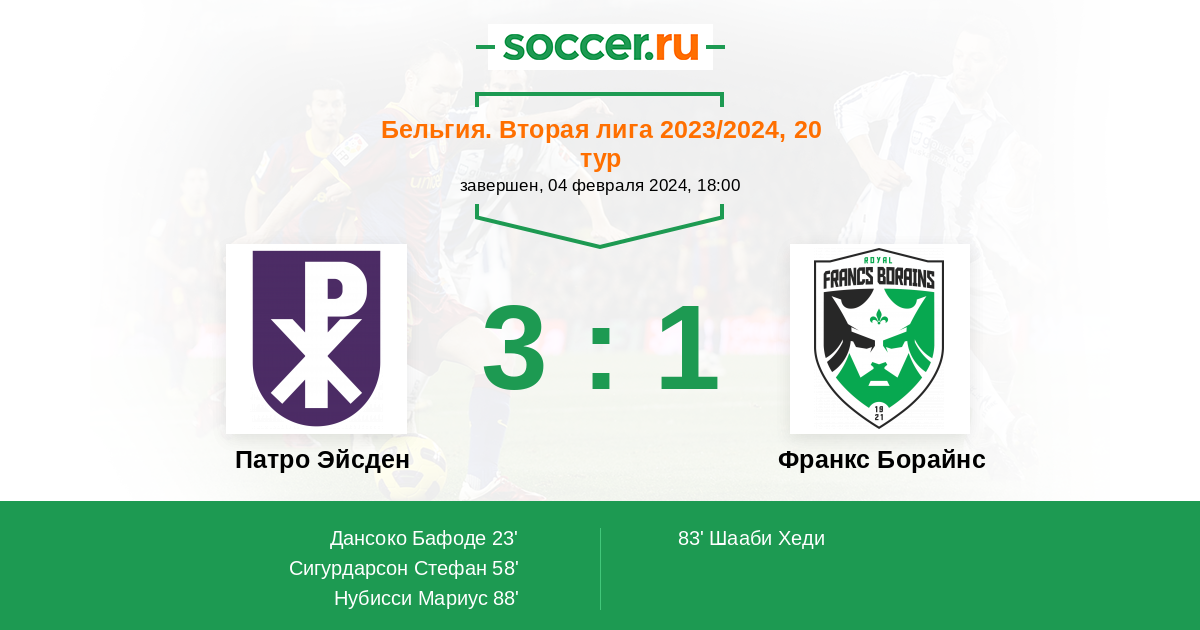 Патро Эйсден - Франкс Борайнс: обзор матча 4 февраля 2024