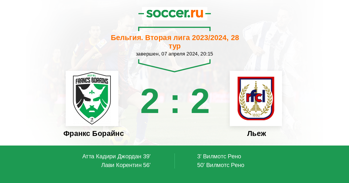 Франкс Борайнс - Льеж: обзор матча 7 апреля 2024