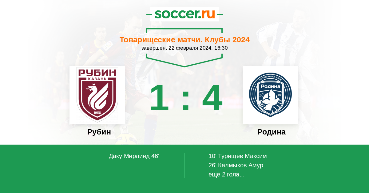 Рубин - Родина: обзор матча 22 февраля 2024