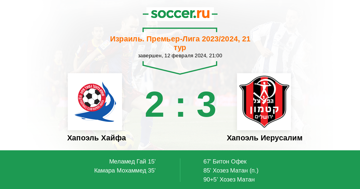 Хапоэль Хайфа - Хапоэль Иерусалим: обзор матча 12 февраля 2024