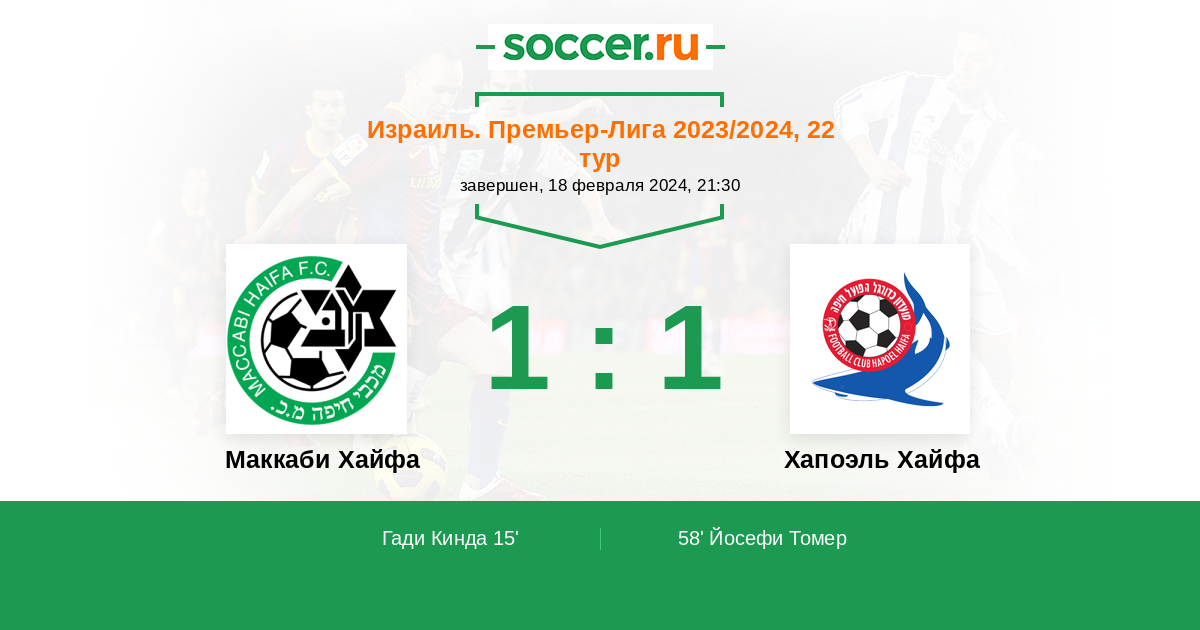 Маккаби Хайфа - Хапоэль Хайфа: обзор матча 18 февраля 2024