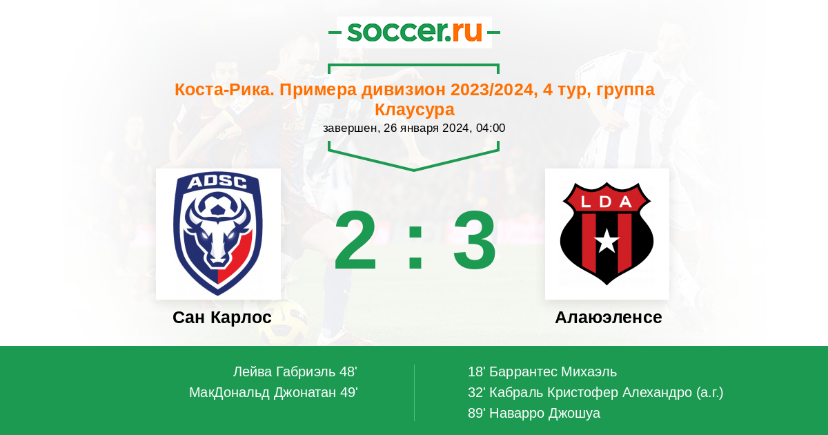 Сан Карлос - Алаюэленсе: обзор матча 26 января 2024