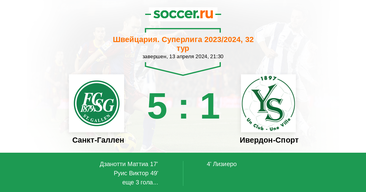 Санкт-Галлен - Ивердон-Спорт: обзор матча 13 апреля 2024