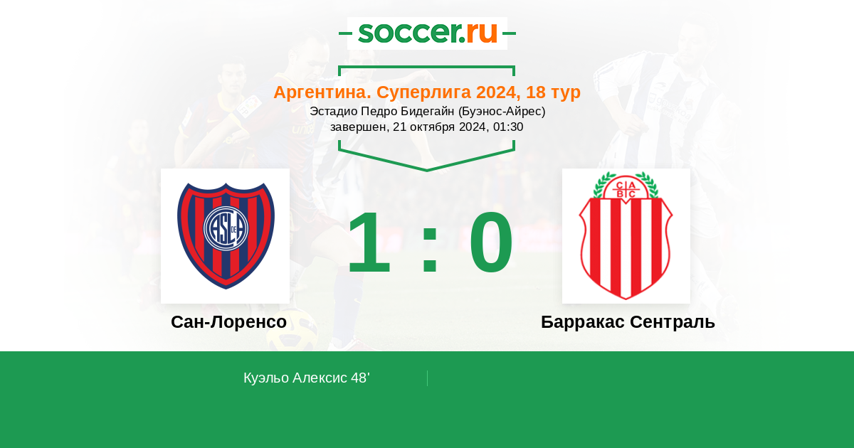 Сан-Лоренсо - Барракас Сентраль: обзор матча 21 октября 2024