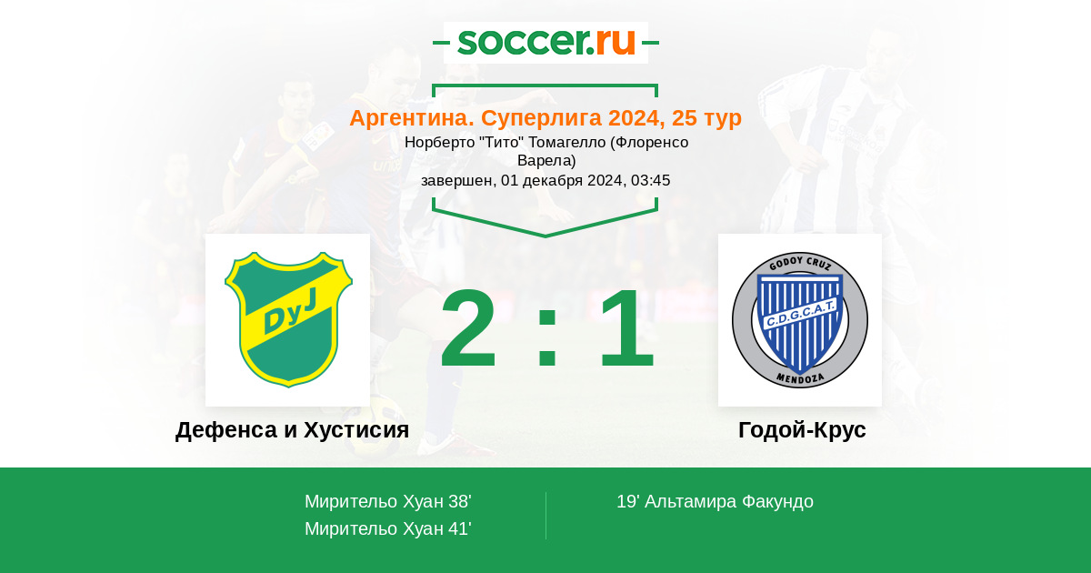 Дефенса и Хустисия - Годой-Крус: обзор матча 1 декабря 2024