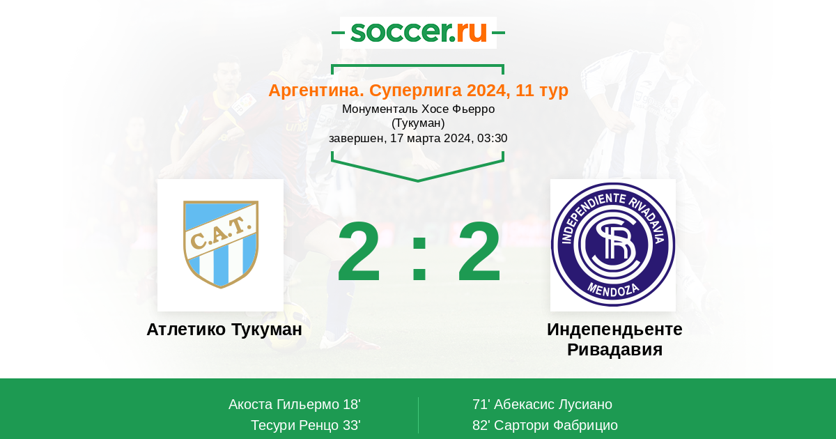 Атлетико Тукуман - Индепендьенте Ривадавия: обзор матча 17 марта 2024
