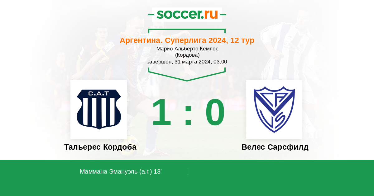 Тальерес Кордоба - Велес Сарсфилд: обзор матча 31 марта 2024