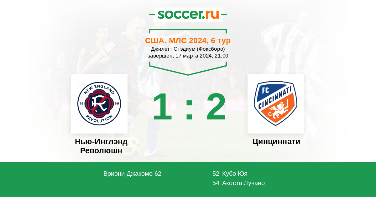 Нью-Инглэнд Революшн - Цинциннати: обзор матча 17 марта 2024