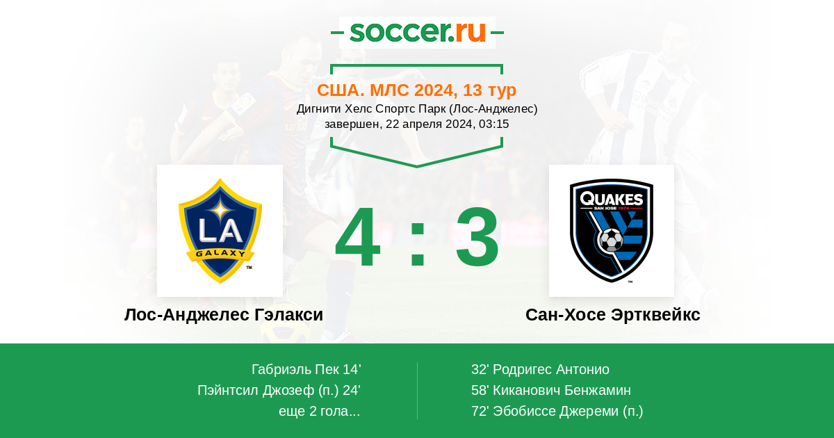 Лос-Анджелес Гэлакси - Сан-Хосе Эртквейкс: обзор матча 22 апреля 2024