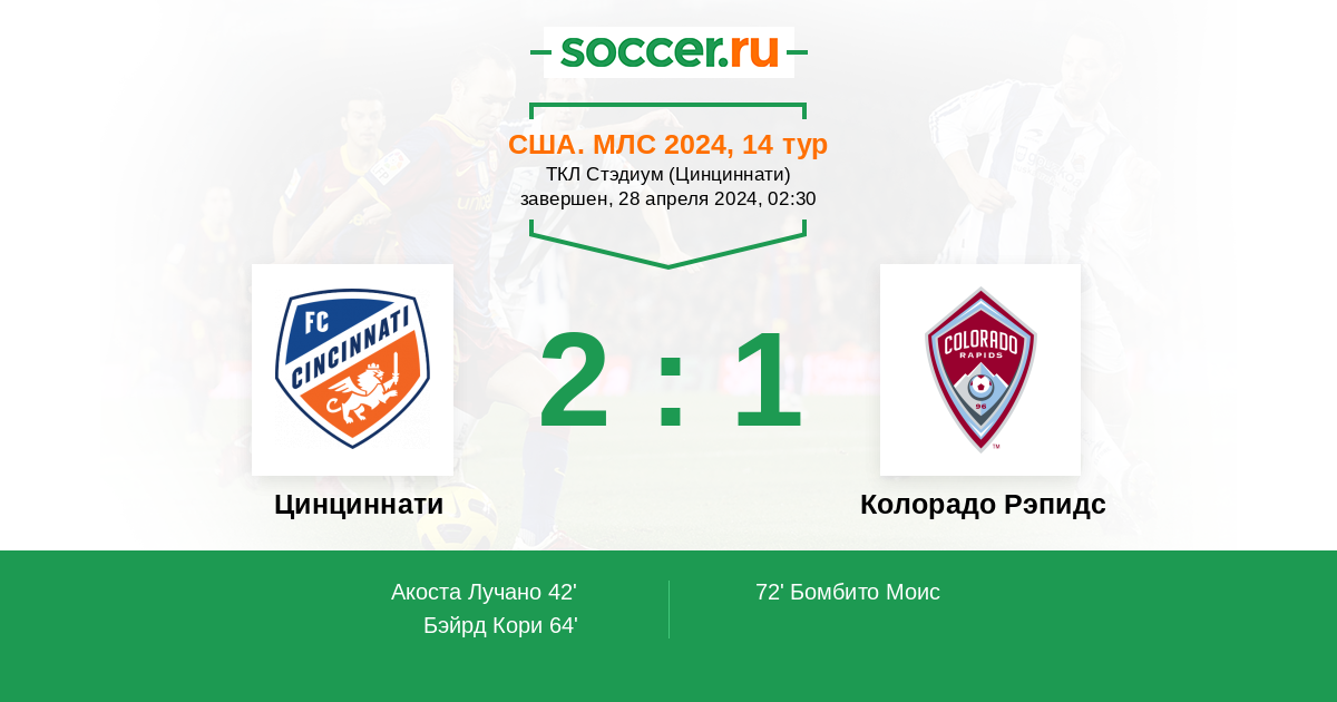 Цинциннати - Колорадо Рэпидс: обзор матча 28 апреля 2024
