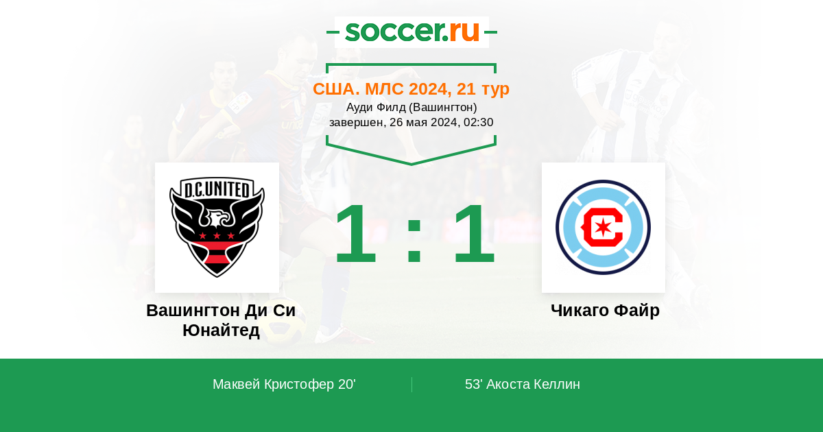 Вашингтон Ди Си Юнайтед - Чикаго Файр: обзор матча 26 мая 2024