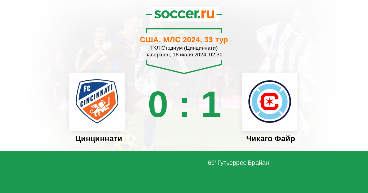 Цинциннати - Чикаго Файр: обзор матча 18 июля 2024