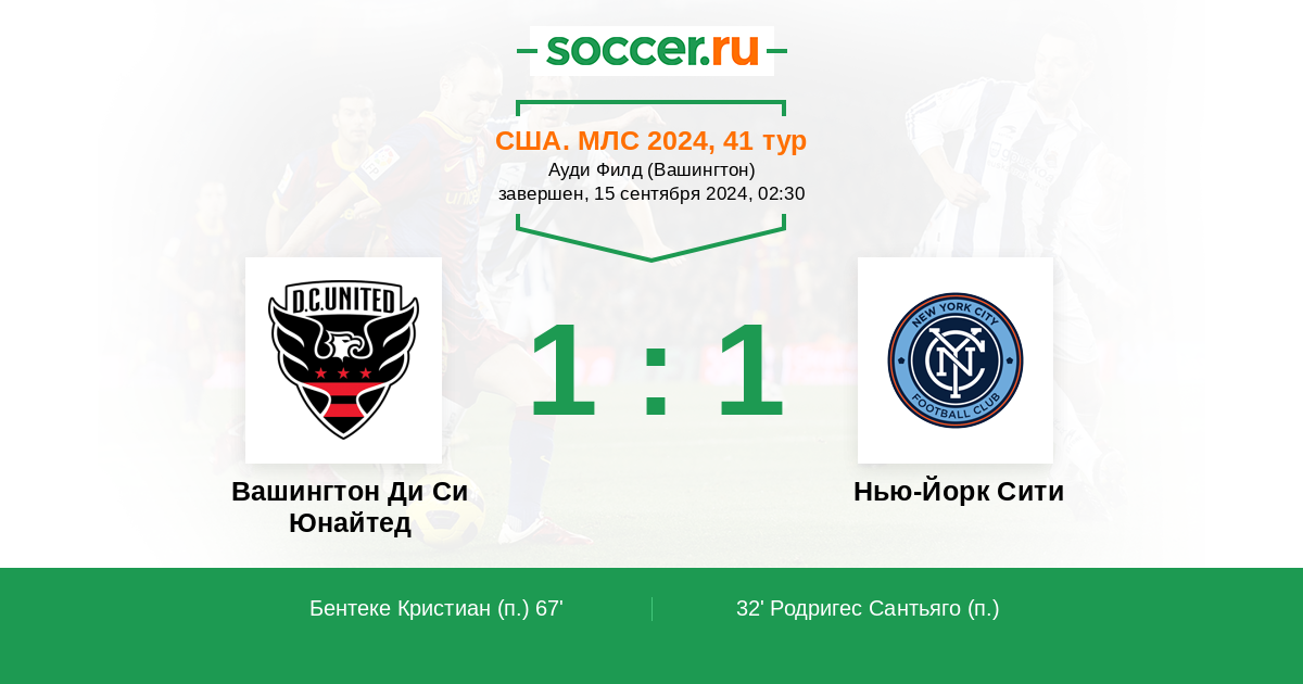 Вашингтон Ди Си Юнайтед - Нью-Йорк Сити: обзор матча 15 сентября 2024