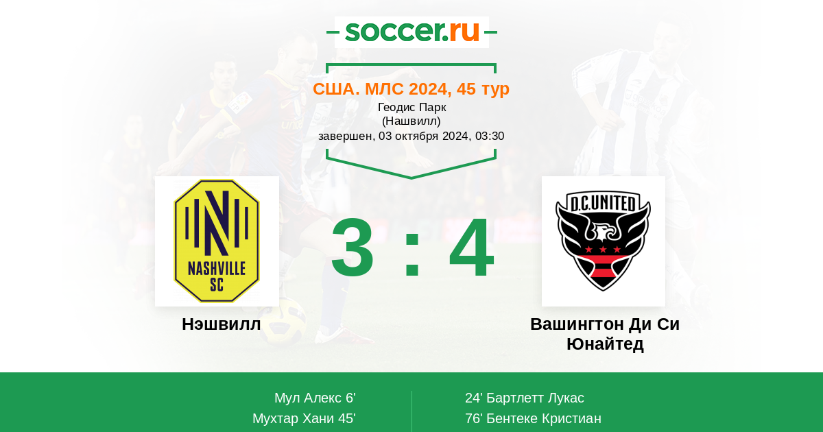 Нэшвилл - Вашингтон Ди Си Юнайтед: обзор матча 3 октября 2024