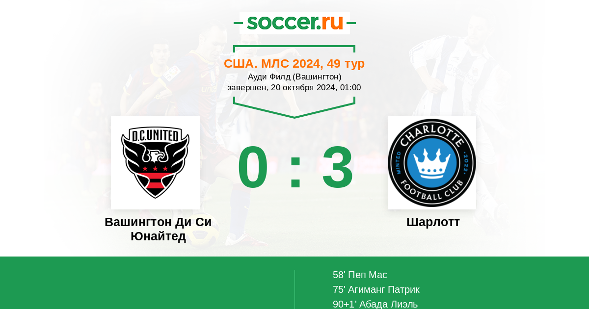 Вашингтон Ди Си Юнайтед - Шарлотт: обзор матча 20 октября 2024