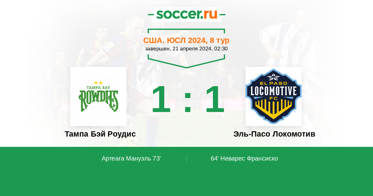 Тампа Бэй Роудис - Эль-Пасо Локомотив: обзор матча 21 апреля 2024