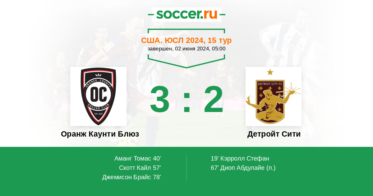 Оранж Каунти Блюз - Детройт Сити: обзор матча 2 июня 2024