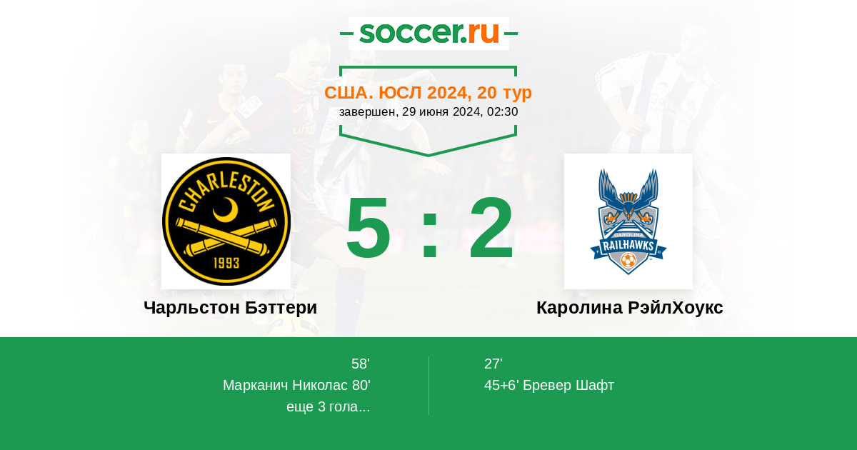 Чарльстон Бэттери - Каролина РэйлХоукс: обзор матча 29 июня 2024