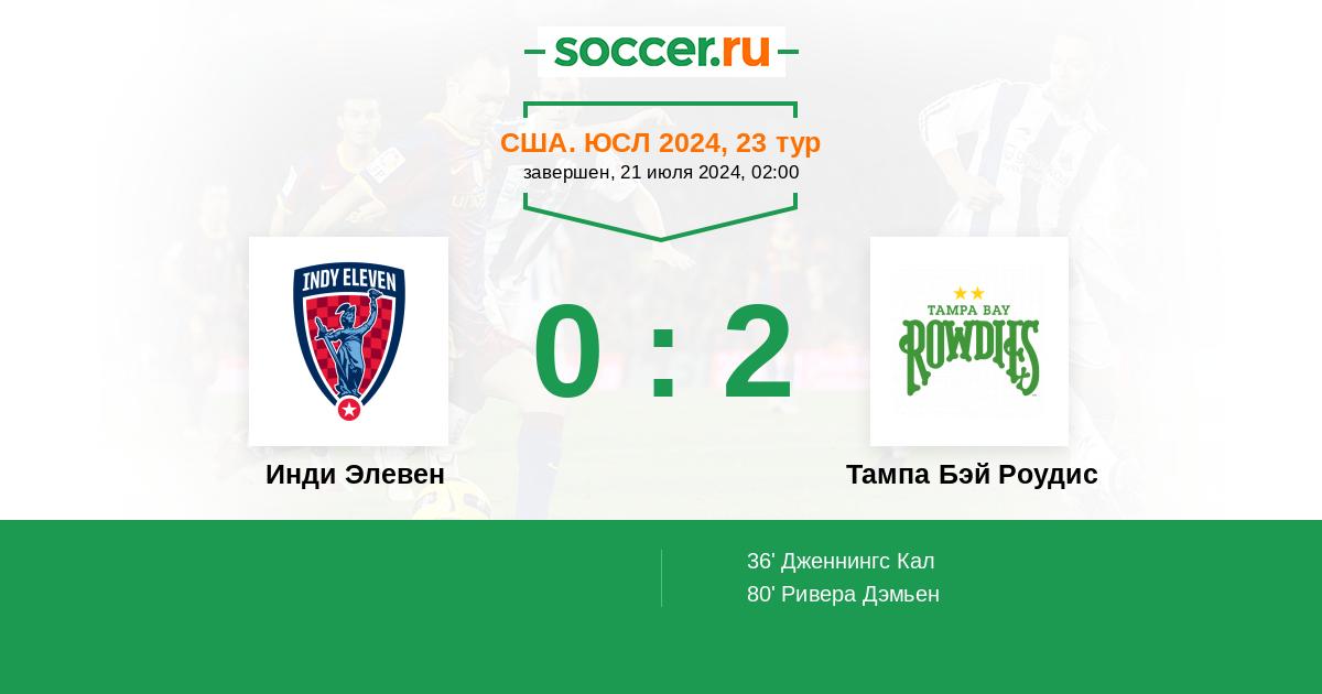 Инди Элевен - Тампа Бэй Роудис: обзор матча 21 июля 2024