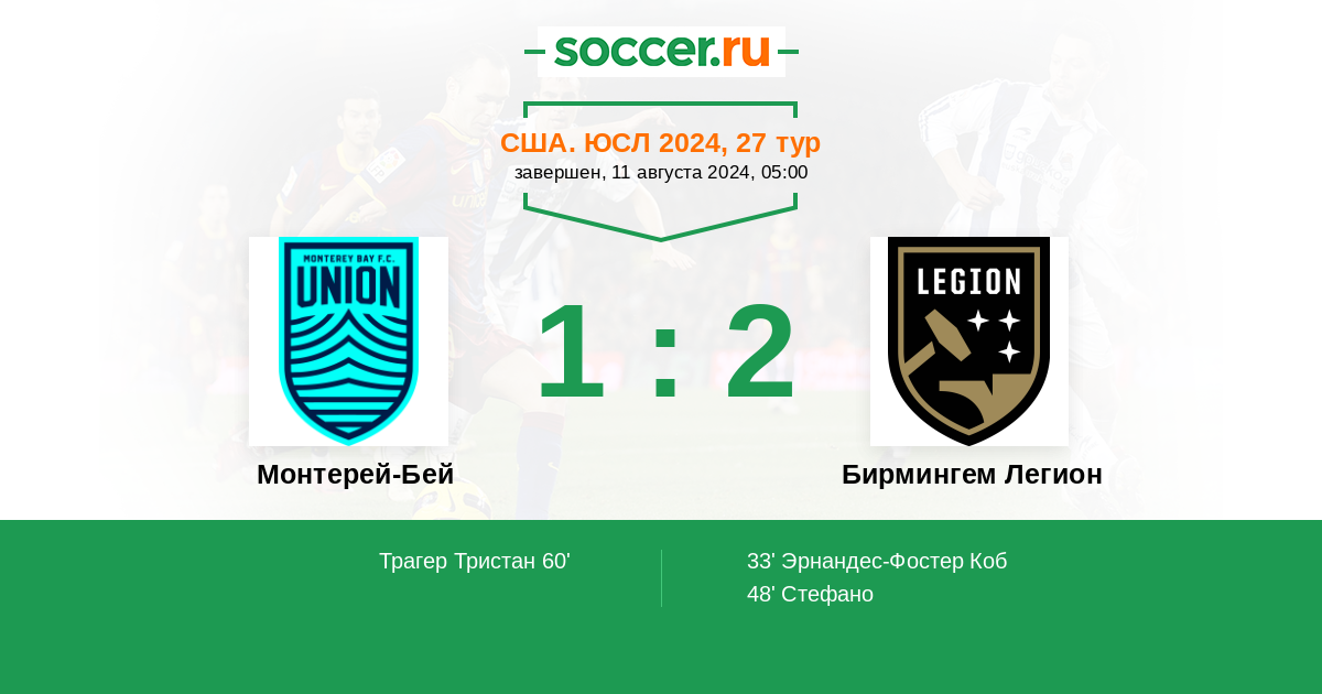 Монтерей-Бей - Бирмингем Легион: обзор матча 11 августа 2024
