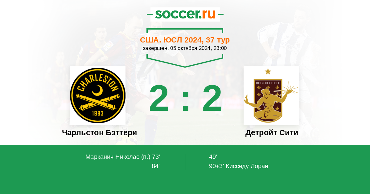 Чарльстон Бэттери - Детройт Сити: обзор матча 5 октября 2024