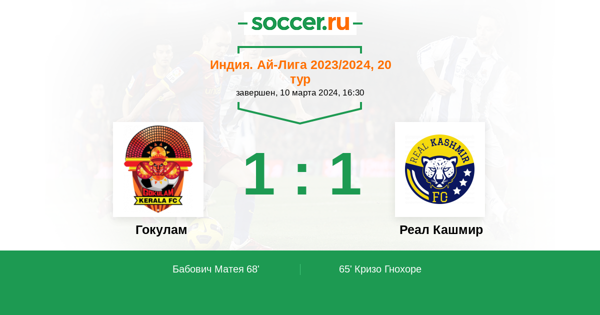 Гокулам - Реал Кашмир: обзор матча 10 марта 2024