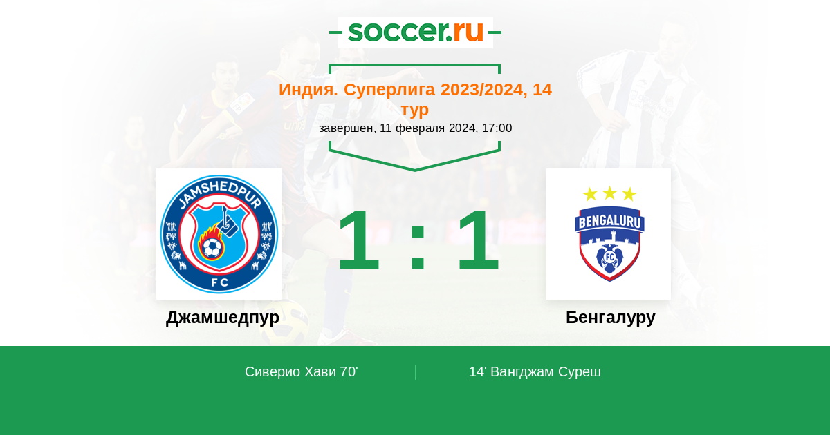 Джамшедпур - Бенгалуру: обзор матча 11 февраля 2024