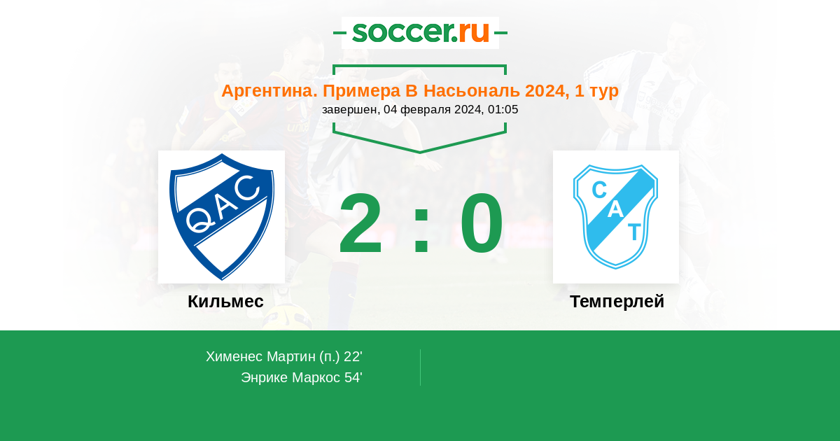 Кильмес - Темперлей: обзор матча 4 февраля 2024