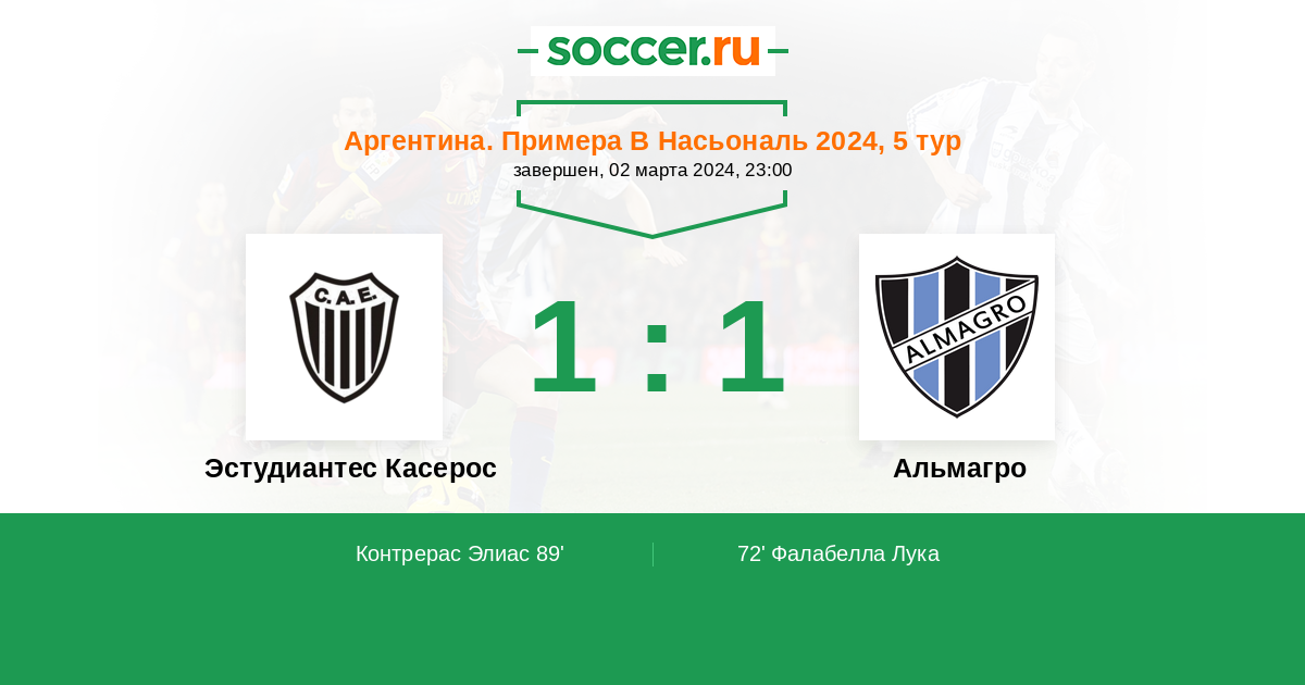 Эстудиантес Касерос - Альмагро: обзор матча 2 марта 2024