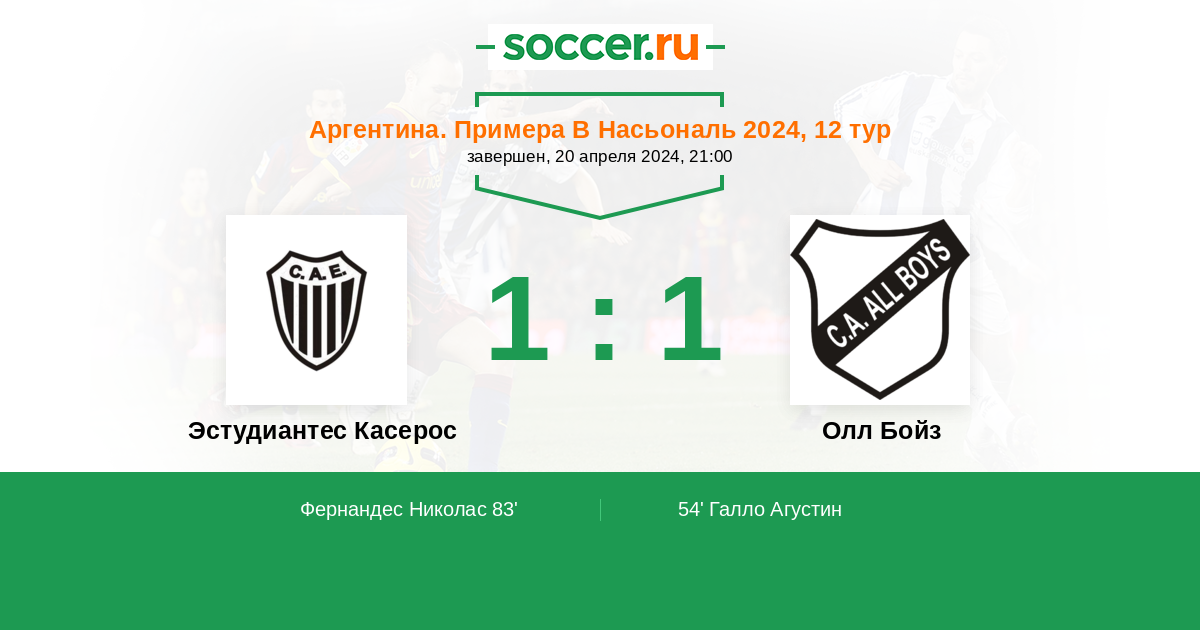 Эстудиантес Касерос - Олл Бойз: обзор матча 20 апреля 2024