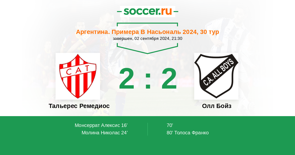 Тальерес Ремедиос - Олл Бойз: обзор матча 2 сентября 2024