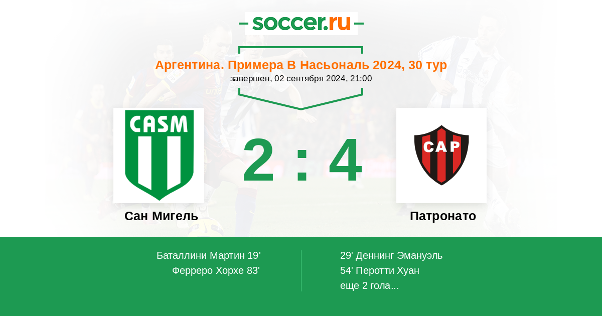 Сан Мигель - Патронато: обзор матча 2 сентября 2024