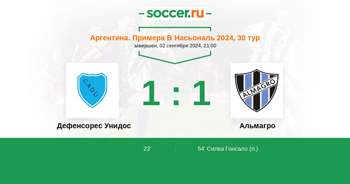Дефенсорес Унидос - Альмагро: обзор матча 2 сентября 2024