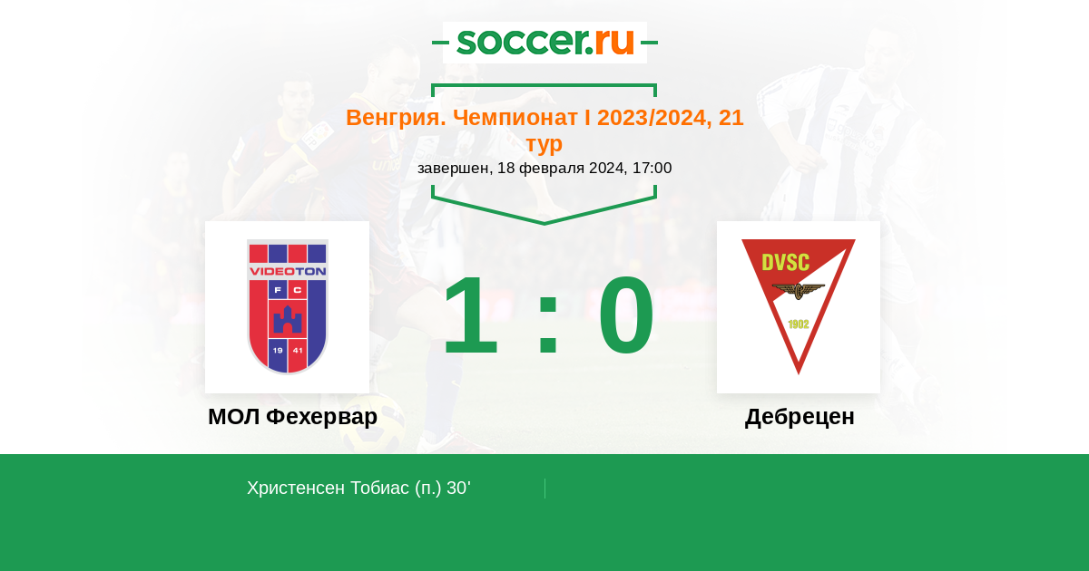 МОЛ Фехервар - Дебрецен: обзор матча 18 февраля 2024