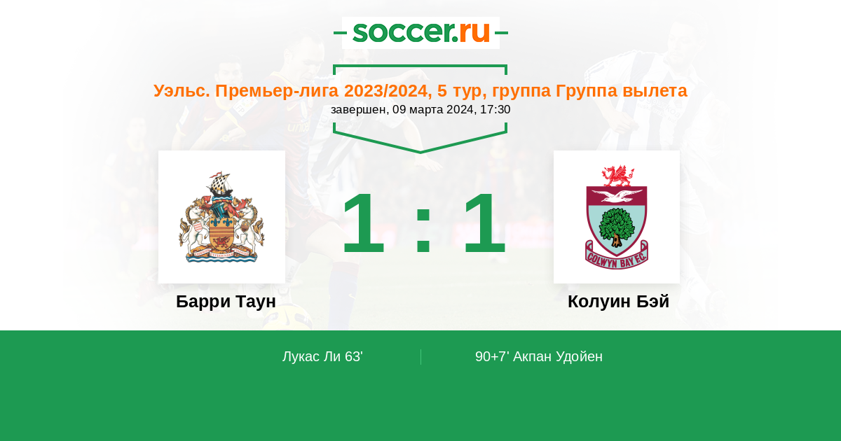 Барри Таун - Колуин Бэй: обзор матча 9 марта 2024